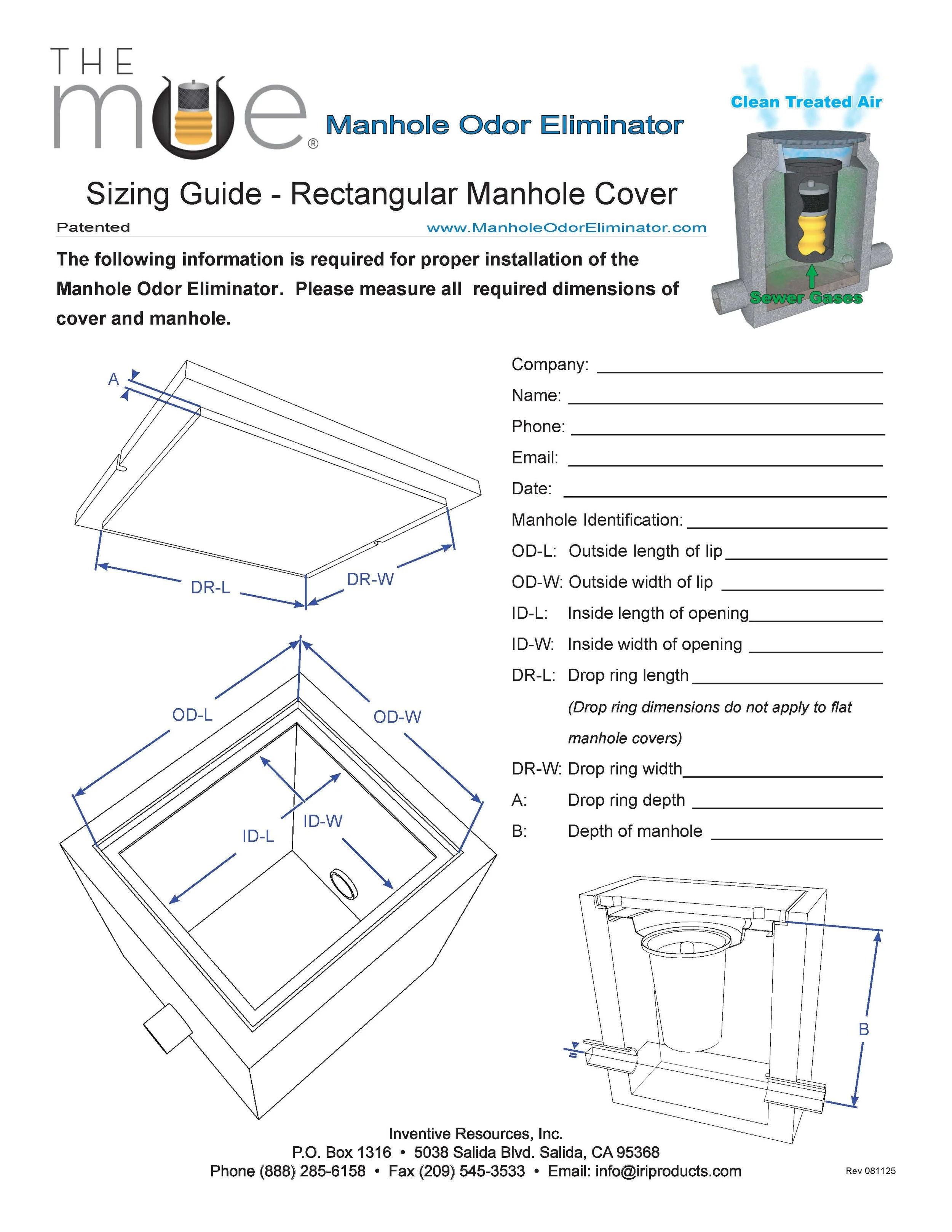 Interested in the Manhole Odor Eliminator? Read the information below and fill out the measurement forms and then reach out to us. We will be in touch shortly!