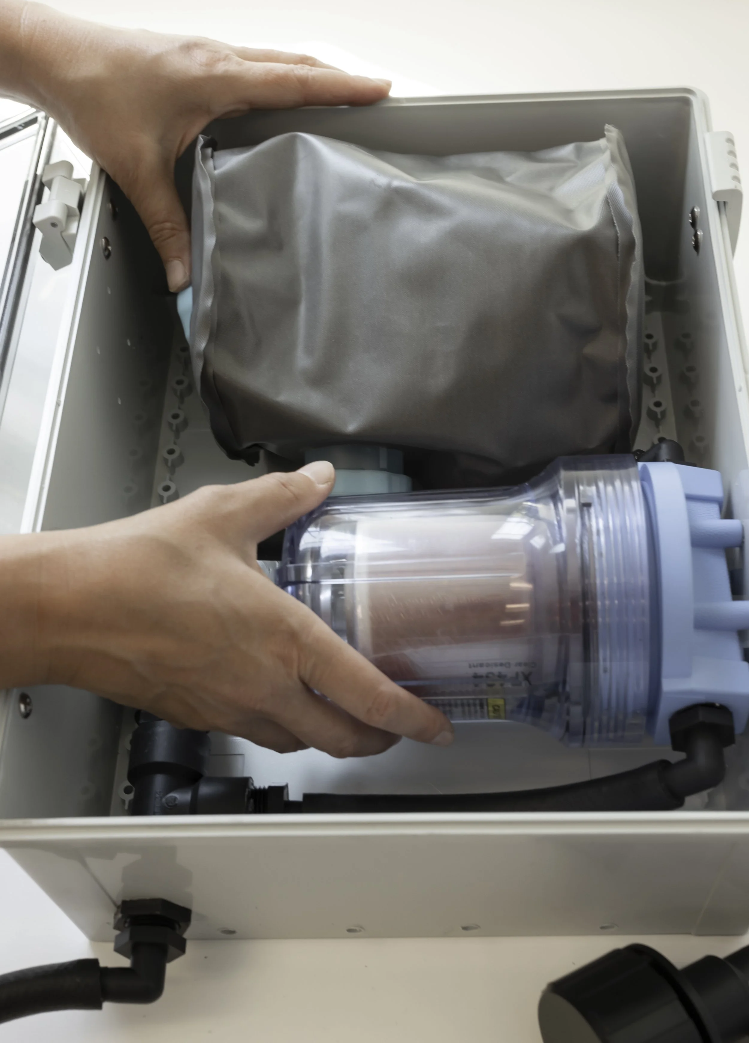 Hands placing a component into an OILN2 unit.
