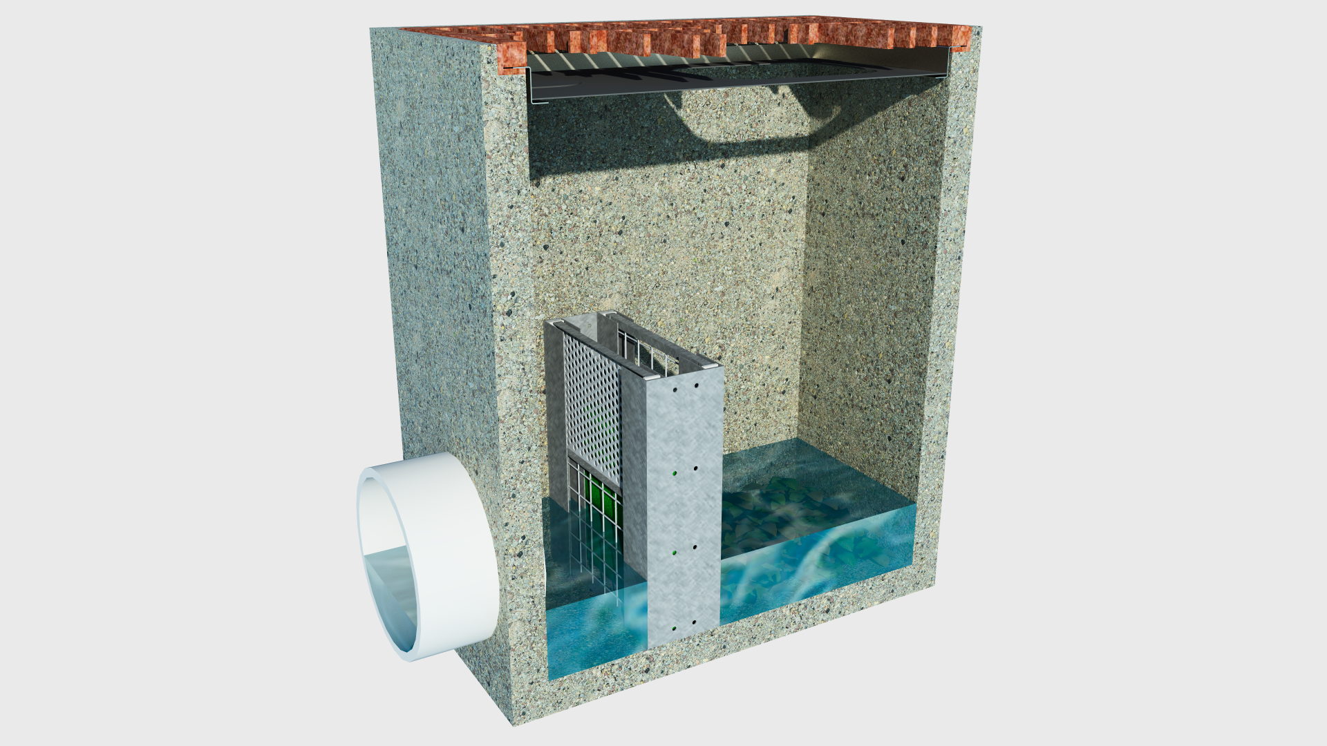 Helps clean parking lot run-off, catch basins, ponds, sumps and spills. Cleans storm run-off by screening sediment, debris and other solids into a sediment trap. Oils and chemicals are absorbed in a disposable cartridge