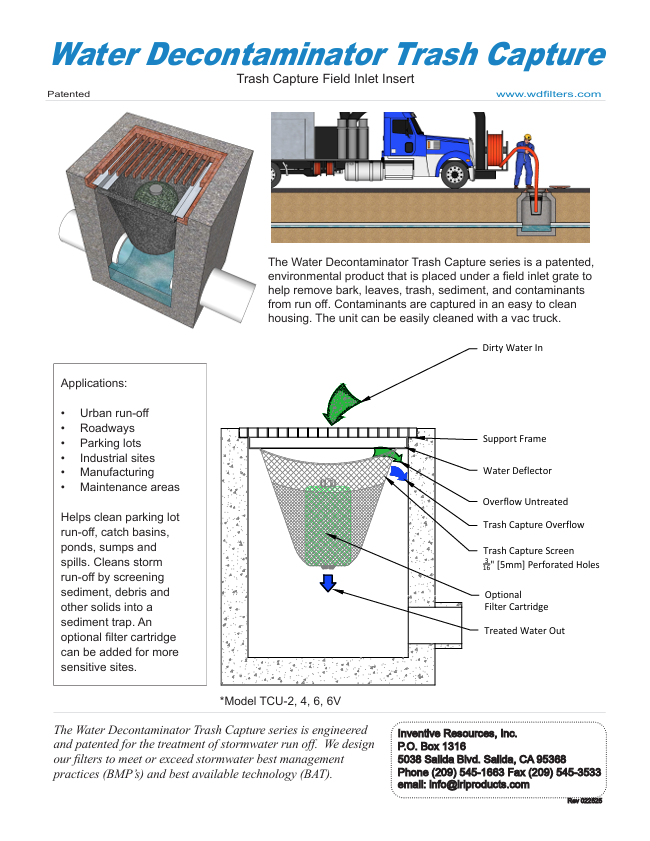 This video from the Tahoe Regional Planning Agency (TRPA) shows Water Decontaminator catch basin insert filters being installed and serviced.